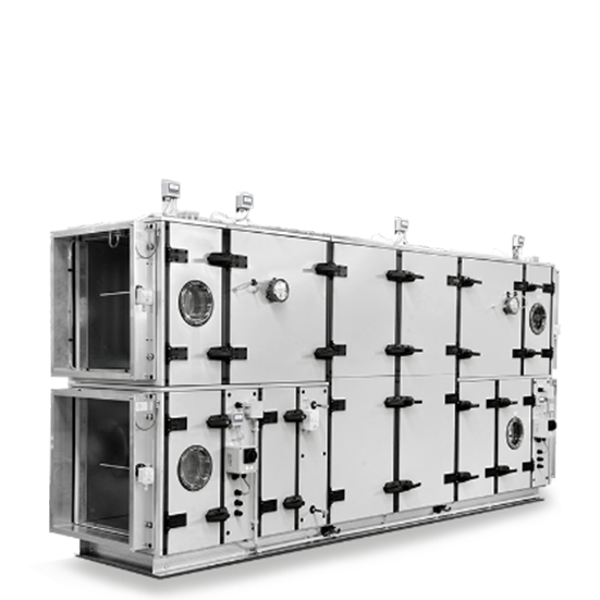 Höchste Hygieneansprüche mit besten thermischen und akustischen Gehäuseeigenschaften: RLT-Gerät mit allen lufttechnischen Funktionen in 18 verschiedenen Baugrößen bis zu einer Luftmenge von 100.000 m3/h lieferbar.