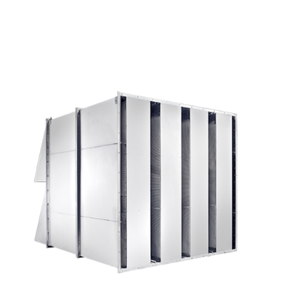 Industrieschalldämpfer ISDI mit eingebauten Kammer-Resonanzkulissen, Kulissenrahmen in genieteter Ausführung.