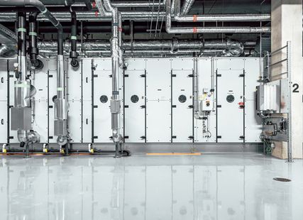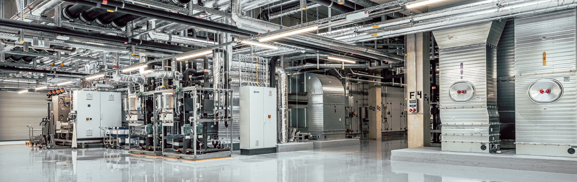 Eine weitere Anforderung an die Lüftungsanlagen war die Reduzierung des Energieverbrauchs durch ein hocheffizientes Wärmerückgewinnungssystem. „Wir mussten einen Wirkungsgrad von größer oder gleich 70 Prozent erreichen – das war die Vorgabe von Boehringer Ingelheim. Klar, denn jedes Prozent Wirkungsgrad weniger kostet später viel Geld. Ein hoher Wirkungsgrad ist nicht nur kosten-, sondern auch umweltschonend“, so Uwe Speidel. Die Raumlufttechnischen Anlagen in der Solids-Launch-Factory sind daher mit dem EcoCond-System der BerlinerLuft. Technik ausgestattet.
