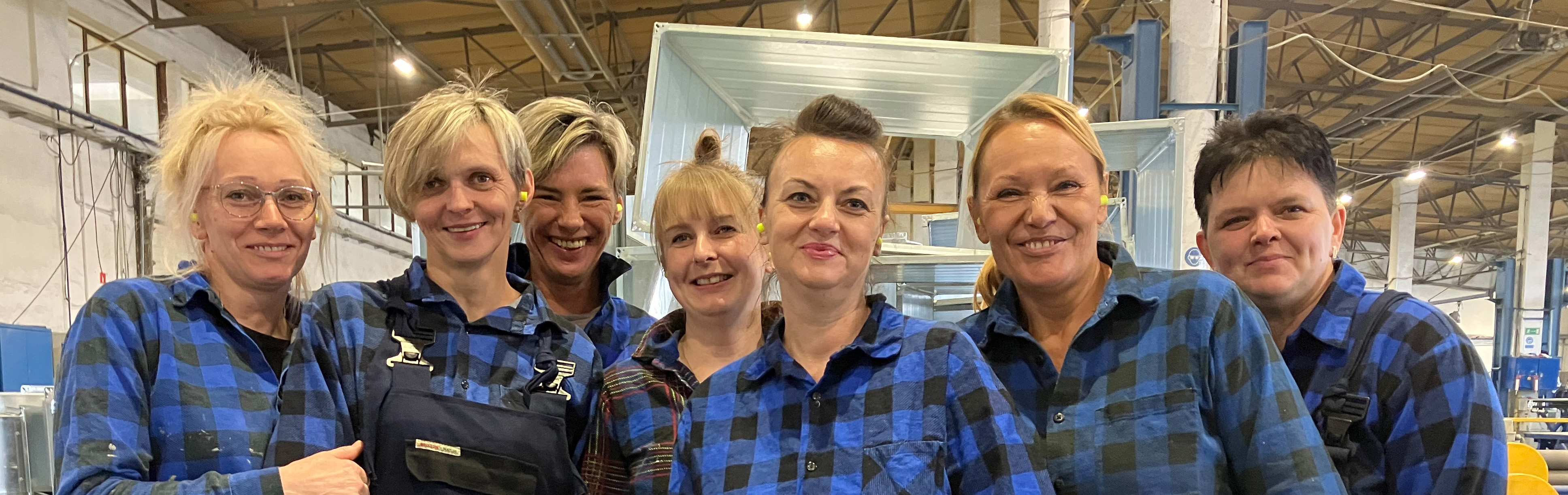 Heute sorgen die elf Frauen gleichberechtigt mit ihren männlichen Kollegen an Stanz- und Biegemaschinen sowie Schweißgeräten und am Plasmaschneider dafür, dass wir unseren Kunden Produkte in höchster Qualität bieten können. Damit diese Produkte dann auch gut bei unseren Auftraggebern ankommen, haben sie selbstverständlich auch die Beladung mit strengem Auge im Blick. Wir sind überzeugt, dass das
